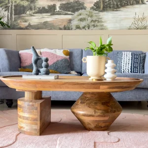 The Scroll Vine Wood Inlay Coffee Table is a stunning combination of intricate craftsmanship and natural elegance. Handcrafted by skilled artisans, this coffee table features a delicate scroll vine pattern created from expertly inlaid wood, forming an organic, flowing design. The rich wood tones and contrasting inlay create a captivating visual effect, highlighting the depth and texture of the design. Its smooth tabletop provides a generous surface for serving, displaying decor, or everyday use, while the sturdy base ensures long-lasting durability. Perfect for living rooms or sitting areas, this coffee table blends artistic detail with functional design.