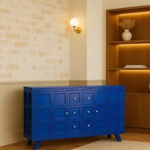 Its thoughtfully designed storage includes spacious shelves and internal compartments, ideal for storing books, décor, dinnerware, or essentials. Finished in matte natural, walnut, or dual-tone polish, it fits beautifully in living rooms, dining spaces, or stylish home offices.
