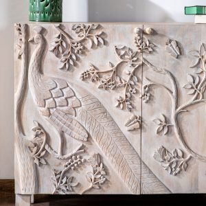 Original price was: ₹59,999.00.₹42,499.00Current price is: ₹42,499.00.Sculpted Heartwood Handcarved Chest of Drawer White Finish