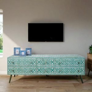 The Antique Solid Wood Handcarved Media Unit is a captivating blend of timeless elegance and functional design. Expertly crafted from premium solid wood, this media unit features intricate hand-carved detailing inspired by classic motifs, adding depth and texture to its rich antique finish. The unit includes multiple compartments and drawers, providing ample storage for media equipment, accessories, and more. Its sturdy construction ensures long-lasting durability, while the natural wood grain and distressed finish give it a vintage charm. Perfect for living rooms or entertainment spaces, this media unit combines old-world artistry with modern practicality.