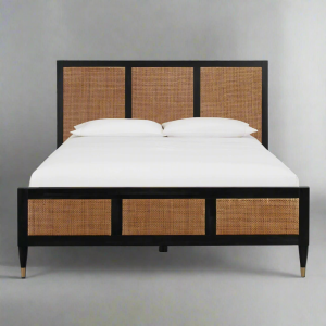 The Dylan Solid Wood Cane Bed is a harmonious blend of traditional craftsmanship and contemporary design.Expertly handcrafted from premium solid mango wood, this bed features intricately woven cane panels on both the headboard and footboard, adding a touch of natural elegance to your bedroom.Its sturdy construction ensures durability, while the minimalist design complements various interior styles, from rustic to modern.