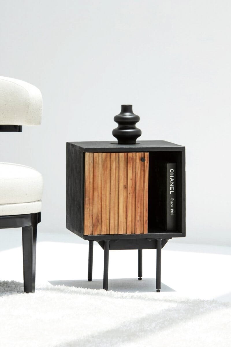 - Material: Klea Slat Wooden BedSide Night Stand with Black Top & Legs