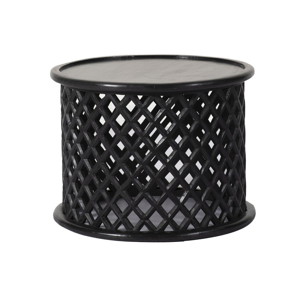 Crafted from solid wood with detailed handcarving, this coffee table features a rich rustic black finish that adds depth and character to any living space. A perfect blend of artisanal charm and sturdy design.
