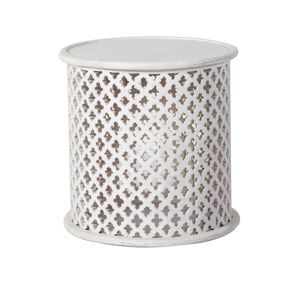 Tags: Accent Table, Artisan Table, Handcarved End Table, Side table, Small End Table, Solid wood table, White Finish, Wooden Furniture