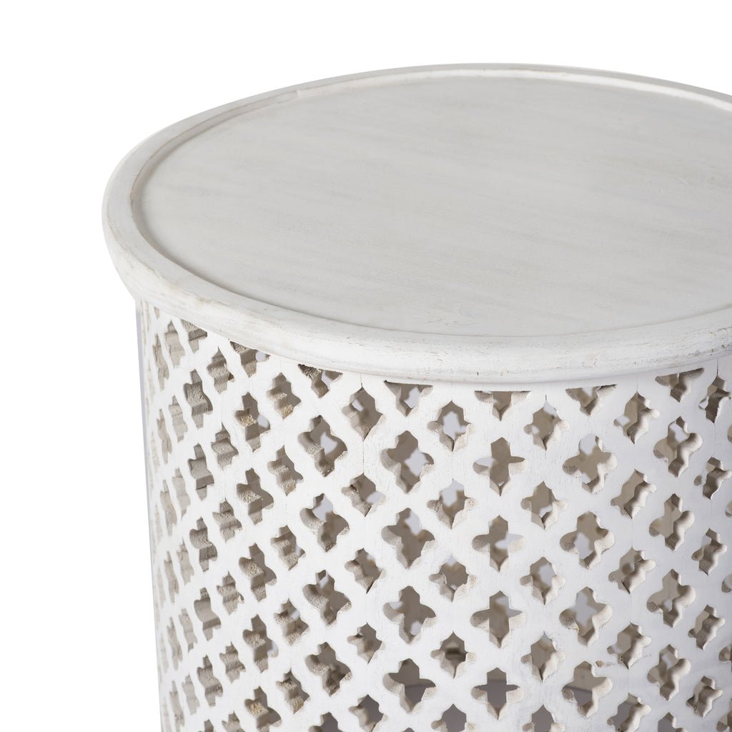 Artisan’s Handcarved Small End Table in White Finish