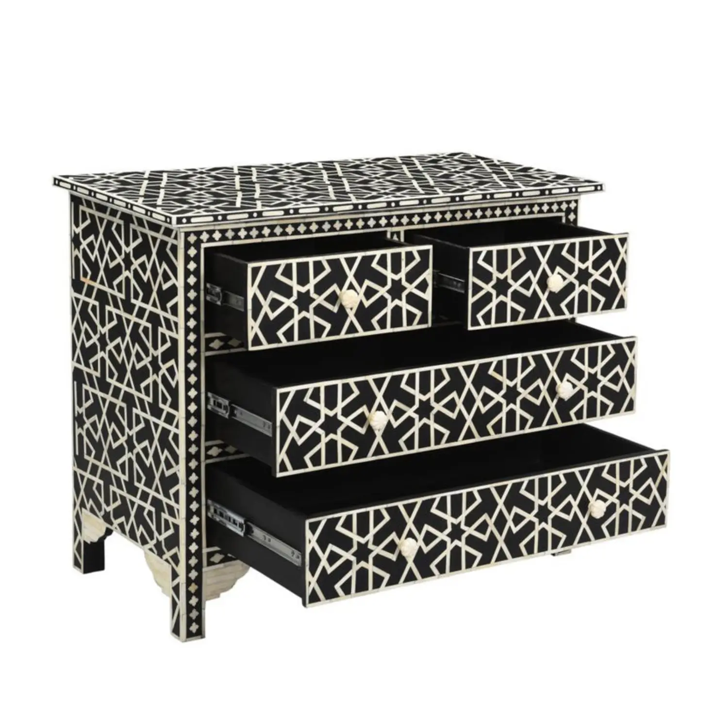 Tags: artistic dresser, bone inlay furniture, decorative chest, Elegant Furniture, handcrafted storage, modern decor, resin chest of drawers, Statement Piece, Stylish Storage, unique design