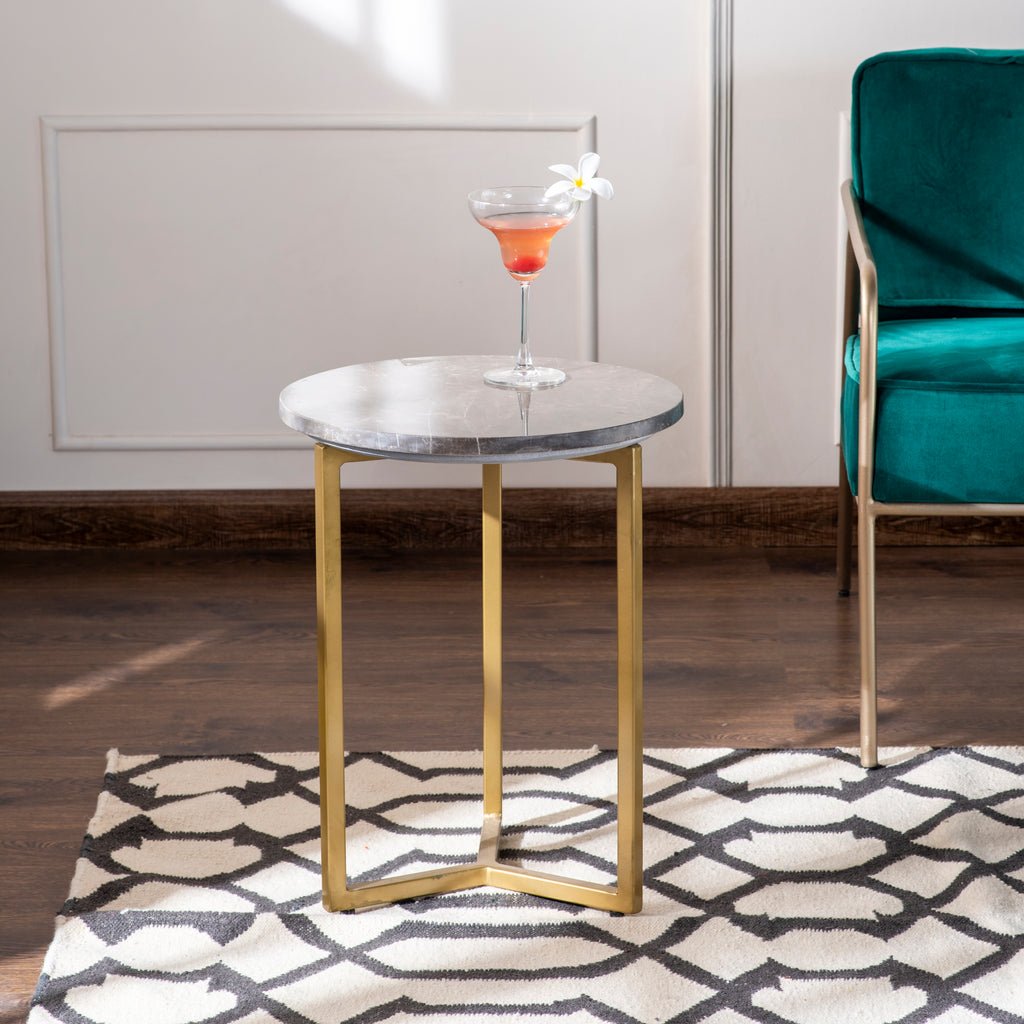 Oasis Brown Marble Top Side Table with Gold Legs