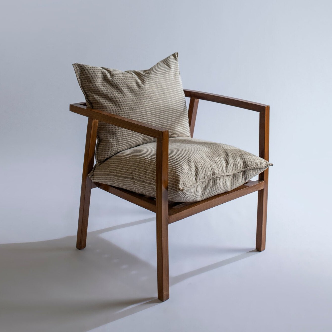 A cozy and stylish solid wood chair designed for comfort, featuring clean lines and a supportive structure perfect for any room.