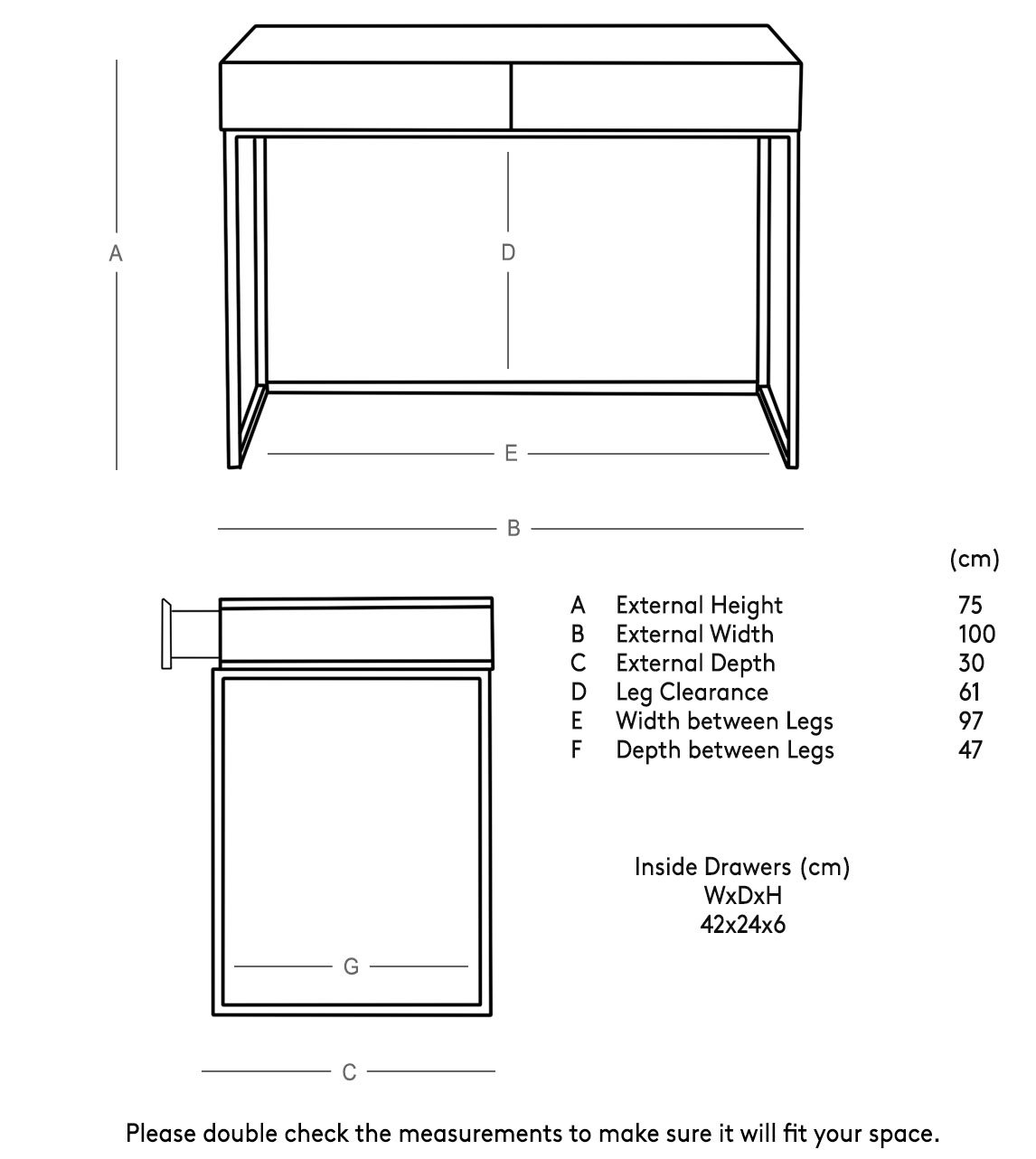 Dimensions: 30 cm (L) x 100 cm (W) x 75 cm (H)