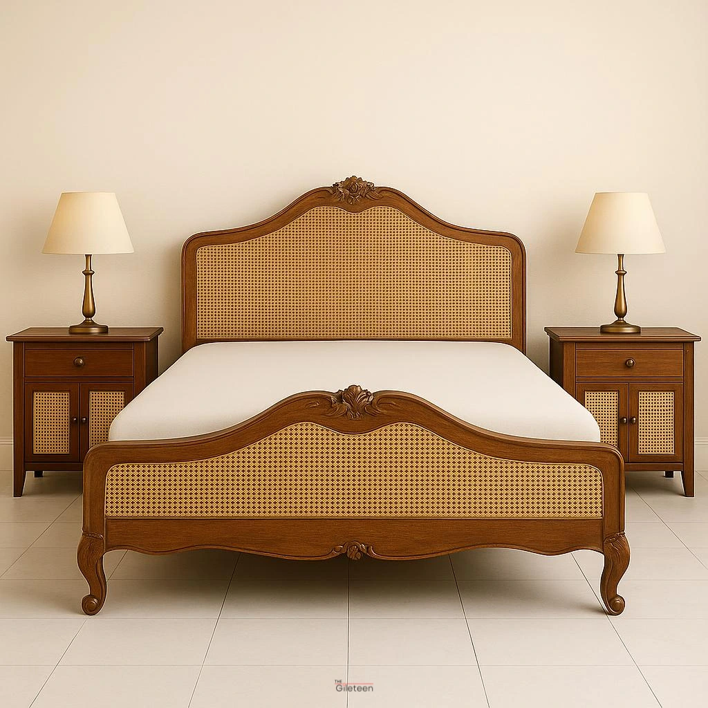 The CaneRegal Queen Bed brings timeless elegance to modern bedrooms with its handcrafted solid wood frame and detailed cane work—designed for both style and comfort.