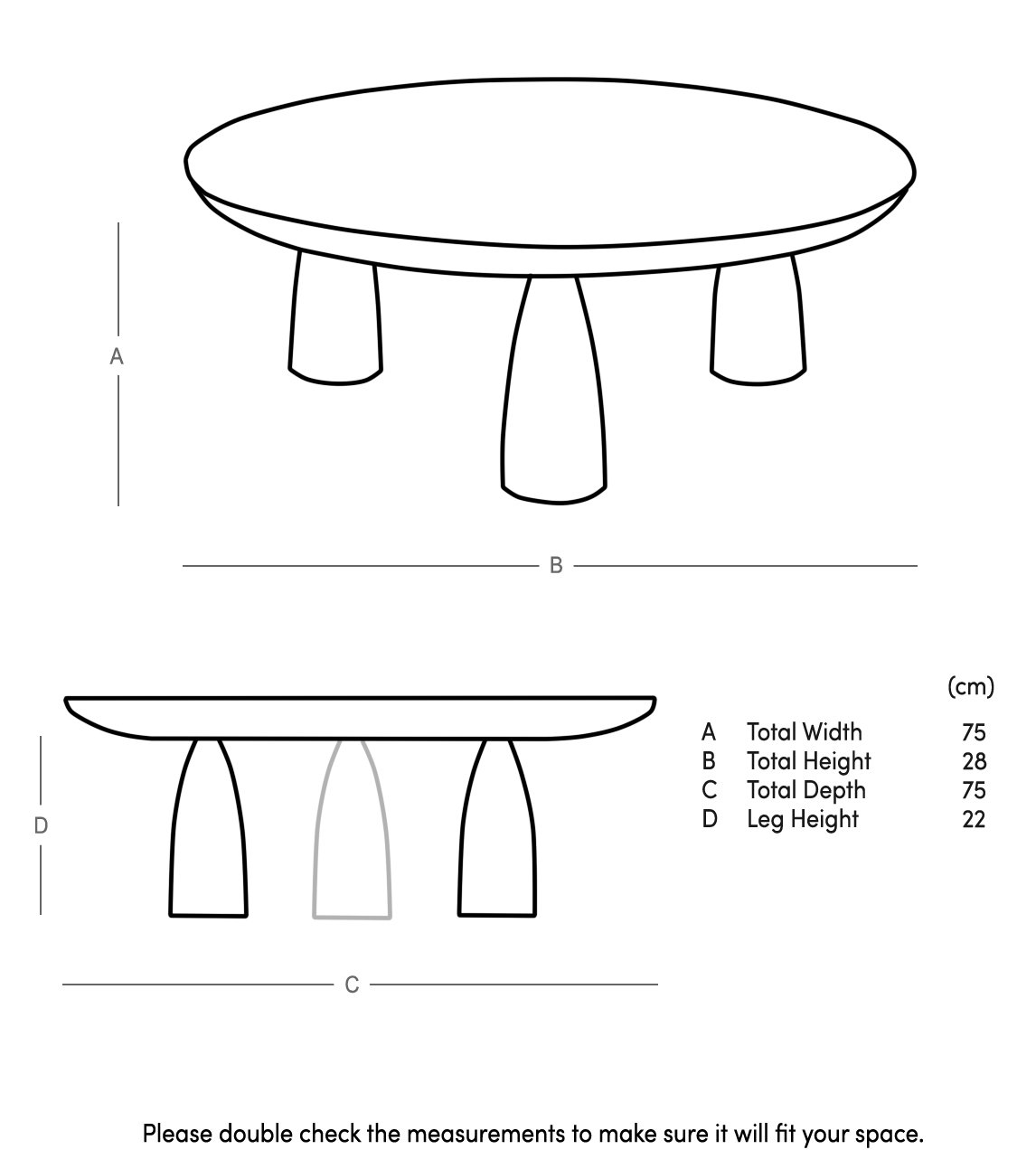 Dimensions: 75 cm (L) x 75 cm (W) x 28 cm (H)