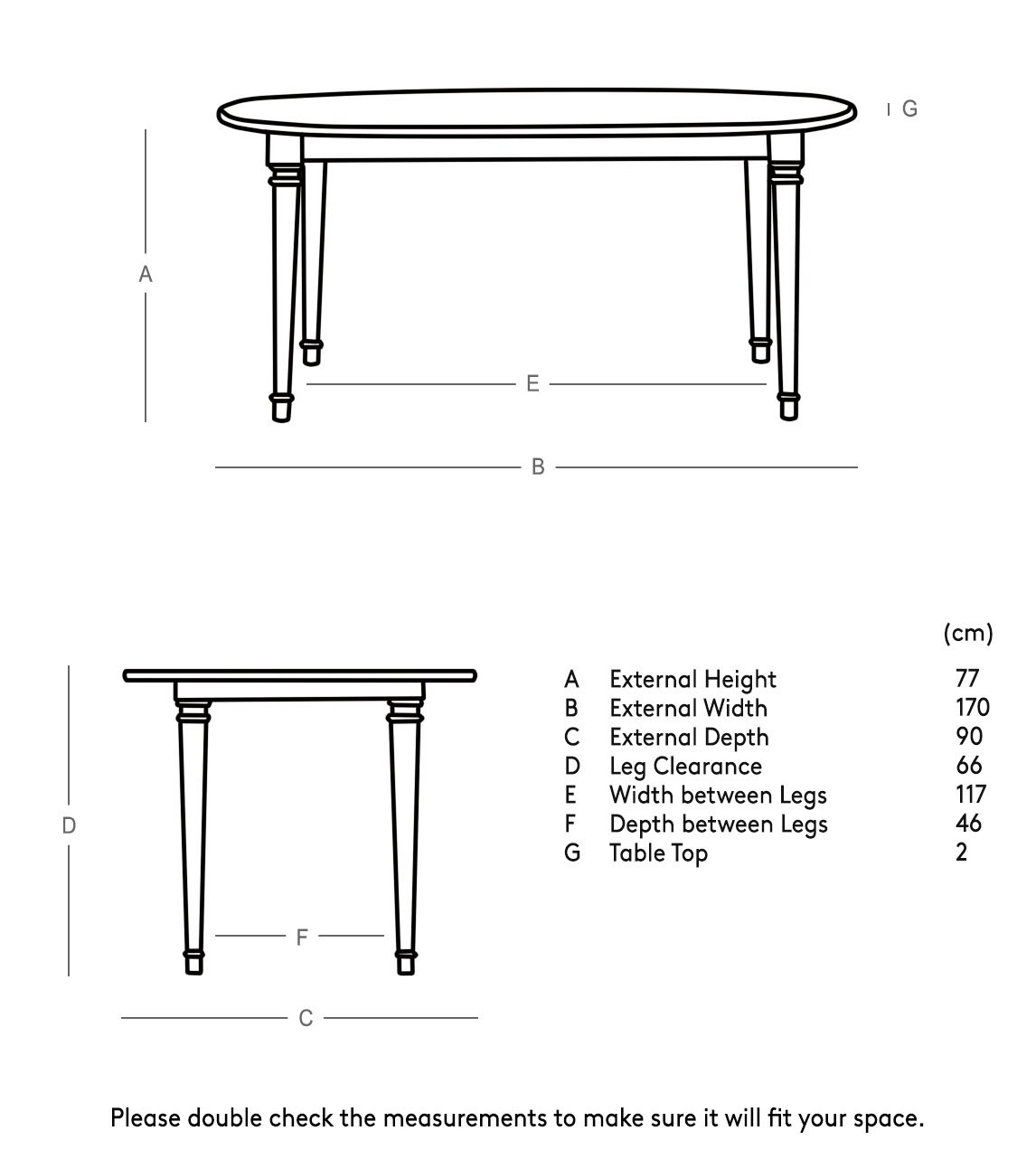 Dimensions: 90 cm (L) x 170 cm (W) x 77 cm (H)