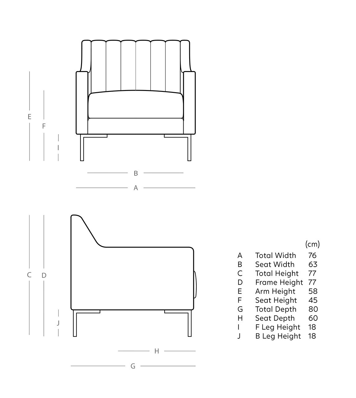 Dimensions: 80L x 76W x 77H cm