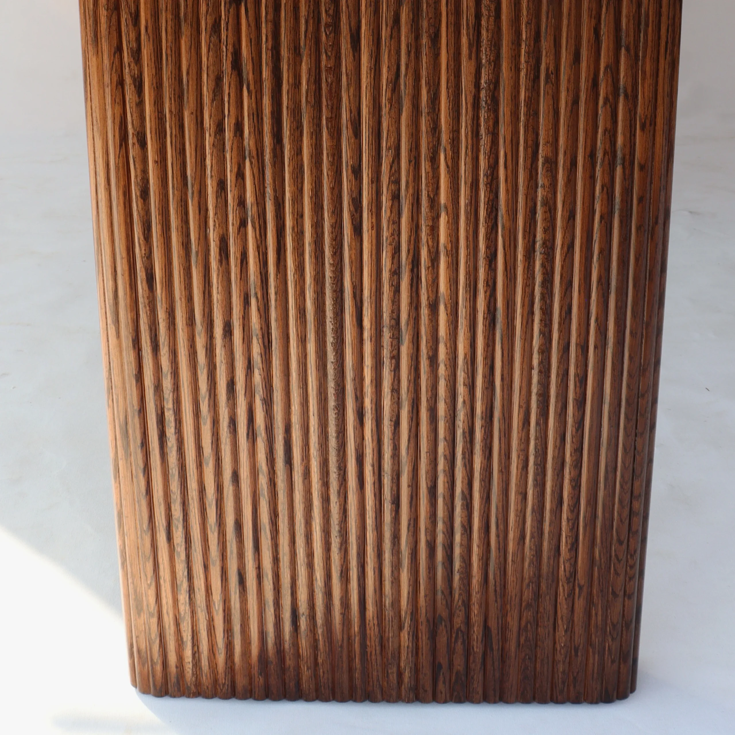 A beautifully crafted dining table featuring elegant fluted wooden legs paired with a smooth solid wood tabletop. Combining classic detailing with sturdy construction, it adds timeless charm and sophistication to any dining space.