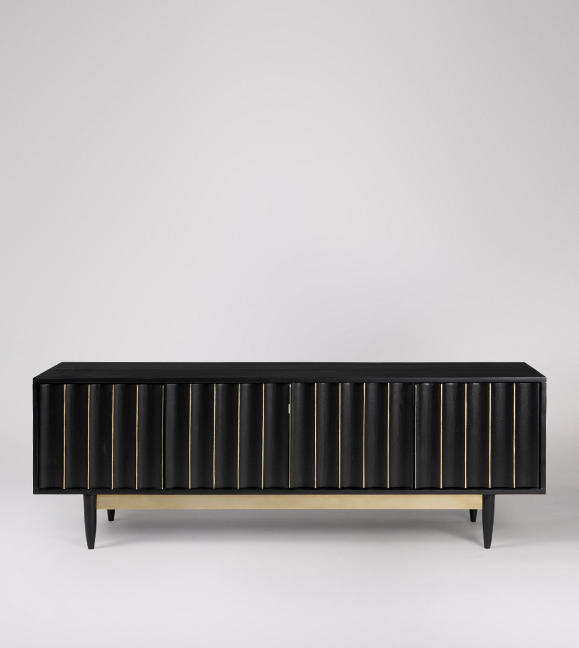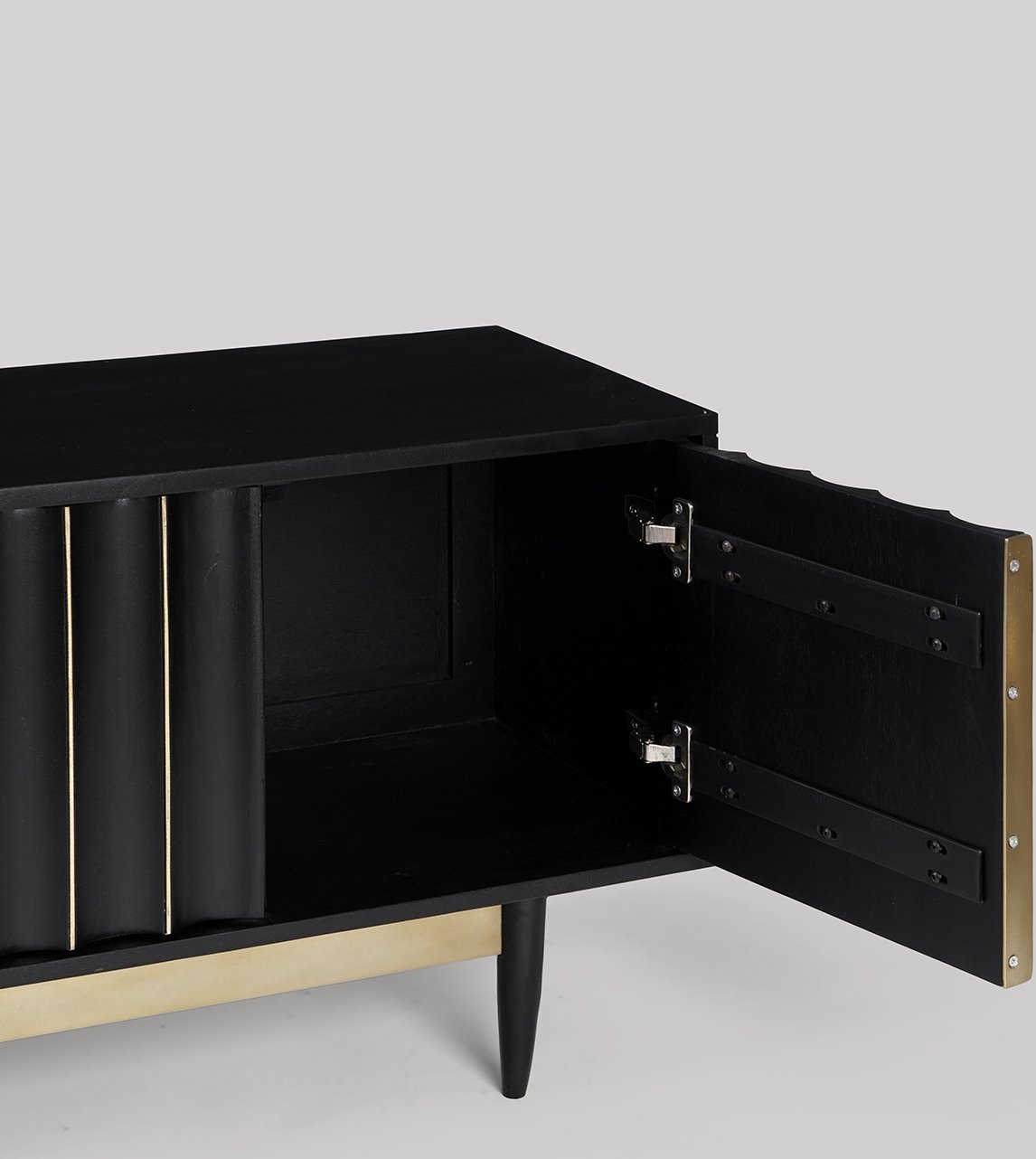 Tags: Brass Accents, Contemporary TV Stand, Foxe TV Stand, Living Room Storage, Mango Wood, Scalloped Design