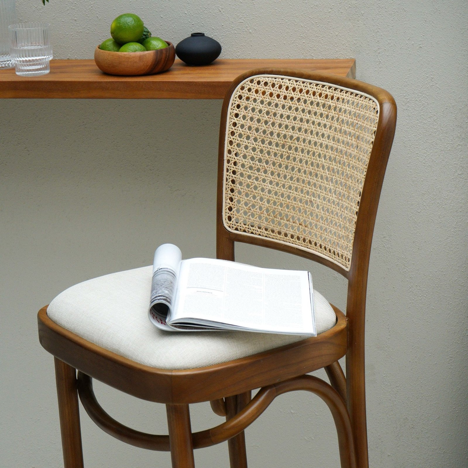 Crafted from solid wood, the Gileteen Bar Chair features a tall, sleek profile with a comfortable seat and timeless design—ideal for modern bars or kitchen counters.