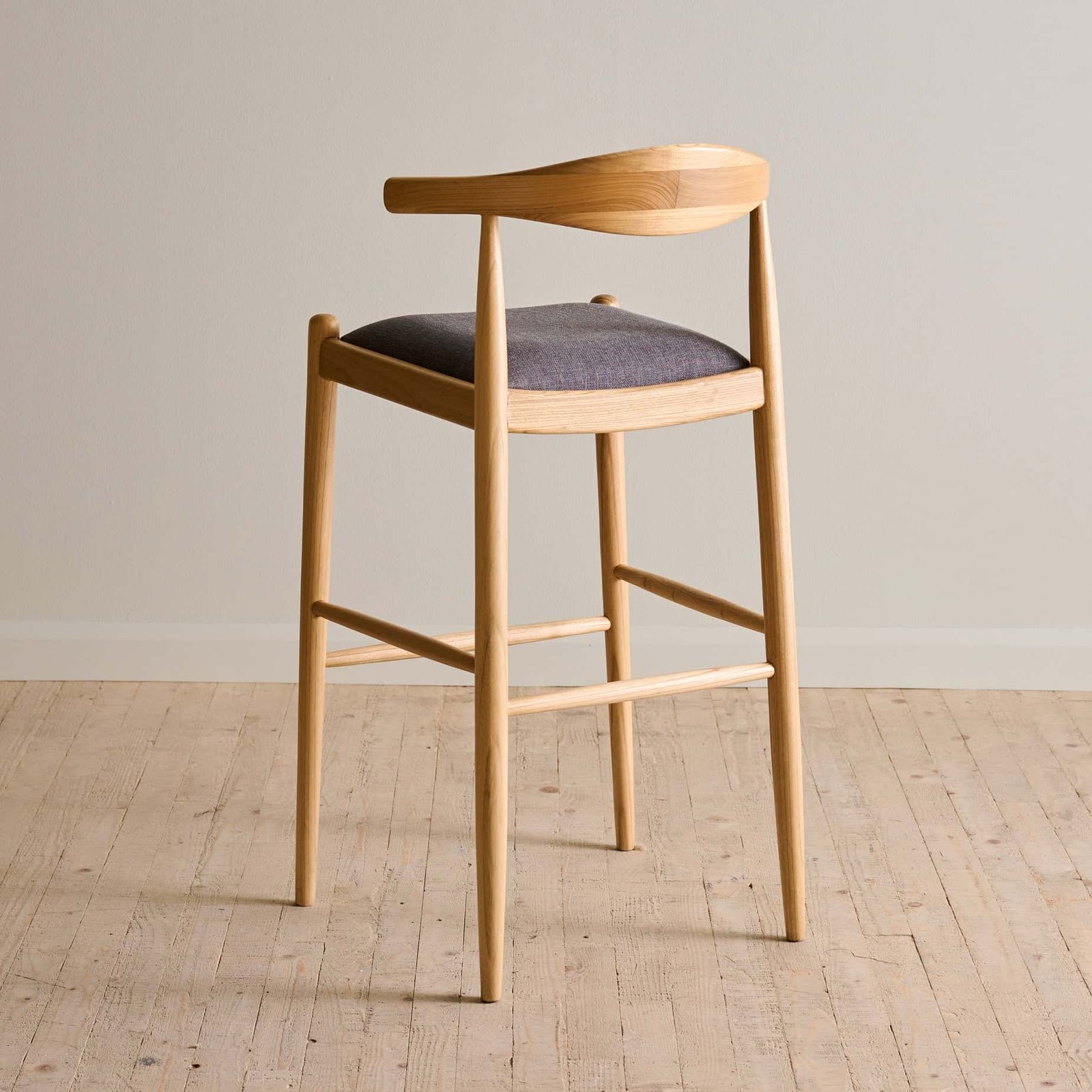Gileteen Bar Chair – solid wood frame with curved backrest and padded seat