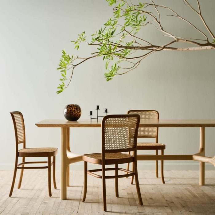 The Gileteen Dining Chair combines sleek design and comfort with its curved backrest and cushioned seat, crafted from premium solid wood for lasting elegance.