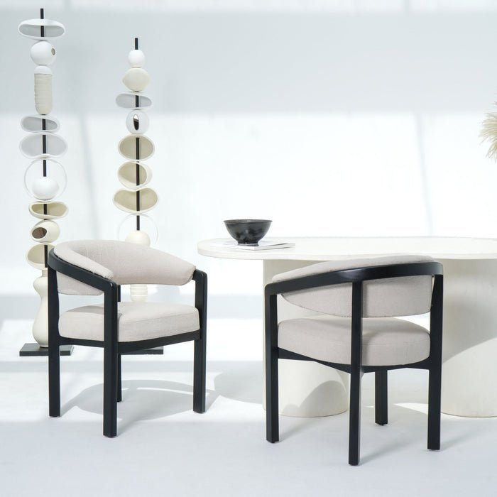 The Gileteen Dining Chair combines sleek design and comfort with its curved backrest and cushioned seat, crafted from premium solid wood for lasting elegance..