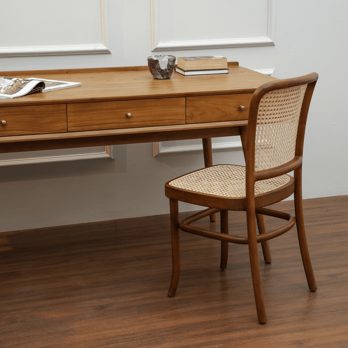This solid wood study desk features a spacious tabletop and sturdy build, combining practical functionality with a clean, modern design—perfect for work or study environments.