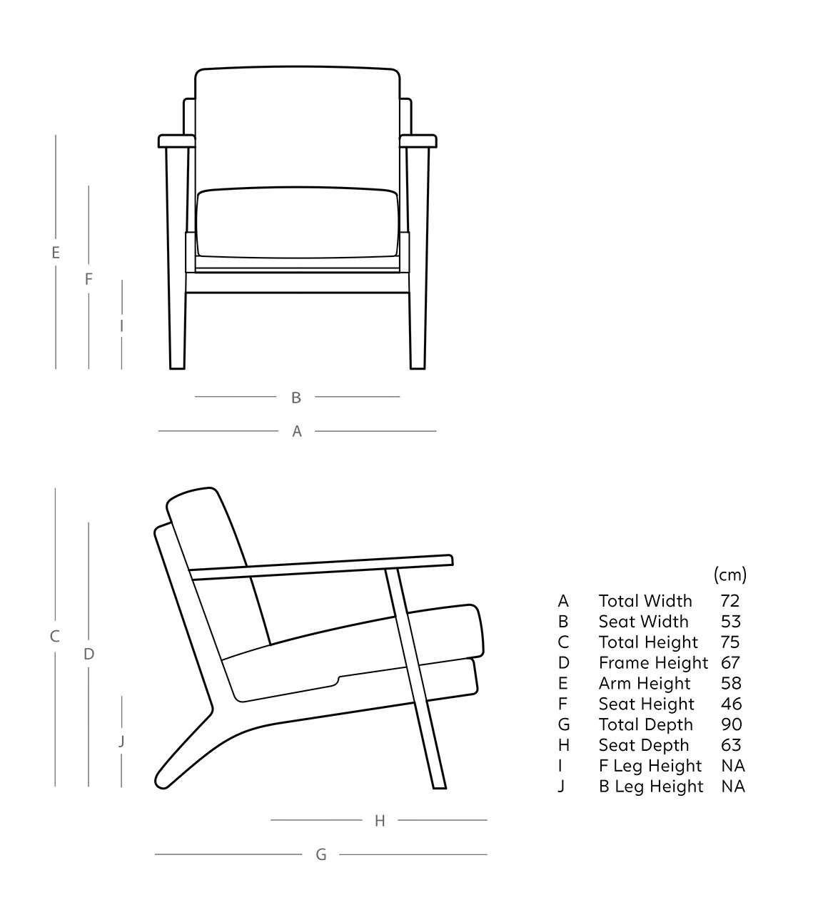 The Karla Armchair features a solid wood frame with a sleek and comfortable design, perfect for adding elegance and support to any living space. Its balanced dimensions make it both stylish and practical.