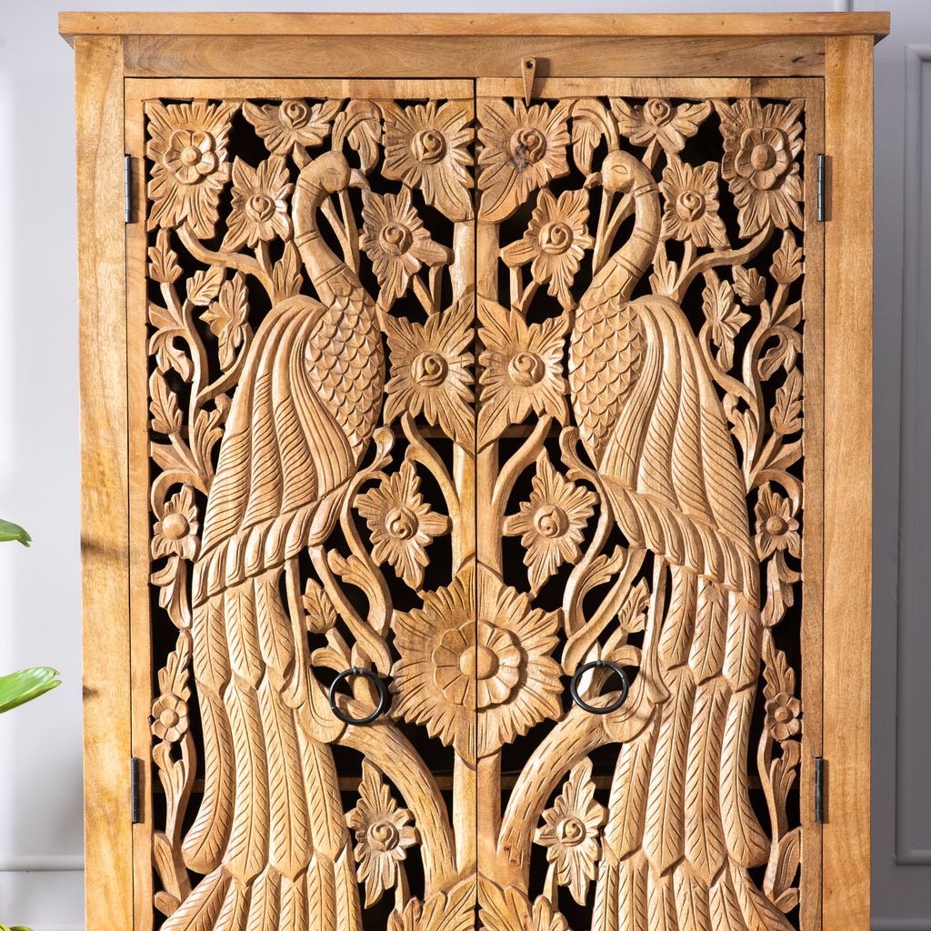 Peacock Carved Solid Wood Buffet