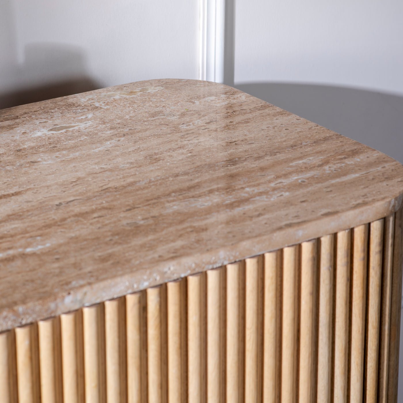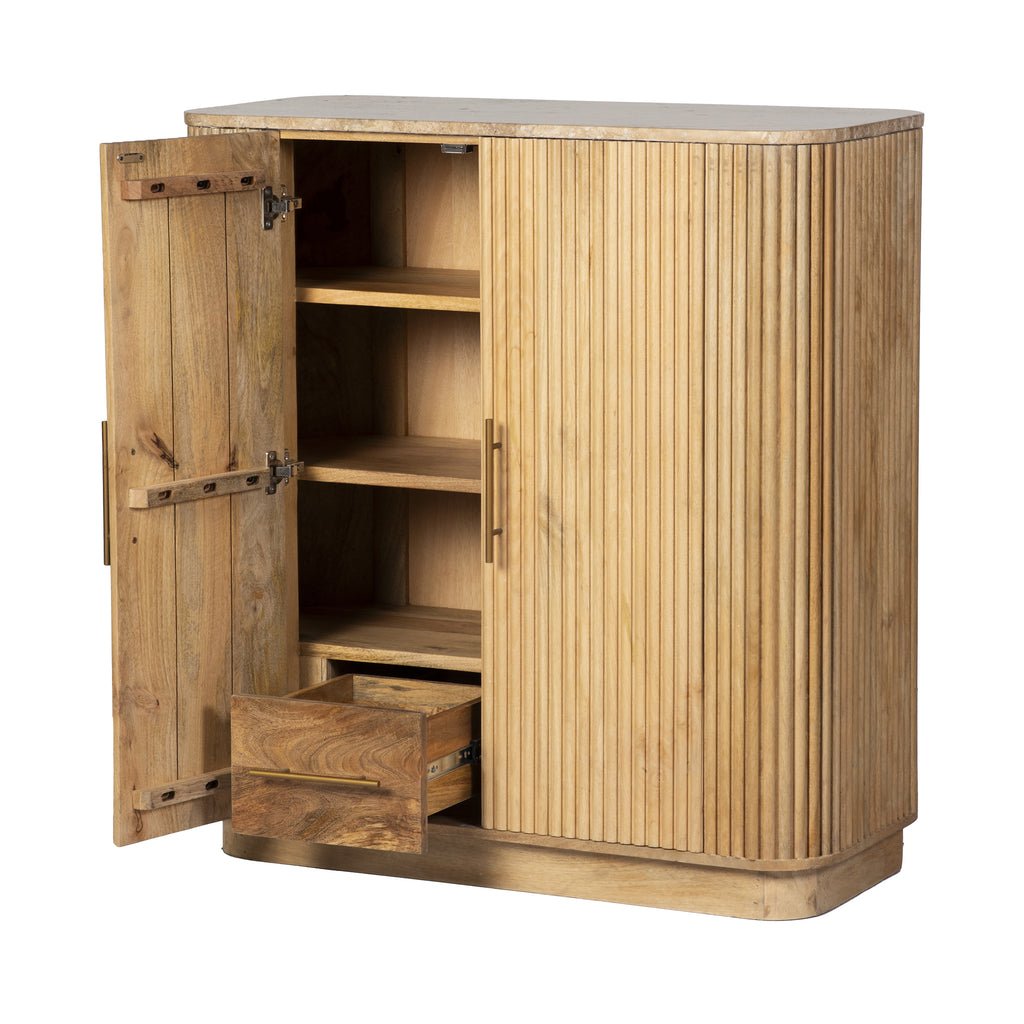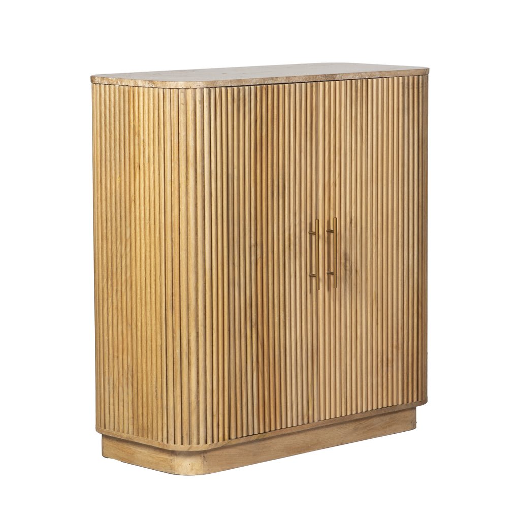 A stylish and sturdy cupboard crafted from solid wood, topped with a smooth marble surface. Combining natural elegance and durable construction, it offers both functional storage and a refined look for any space