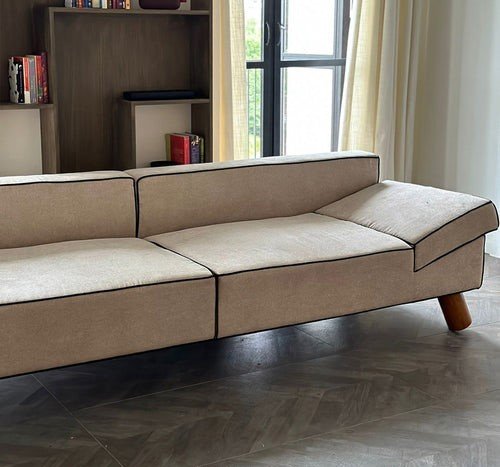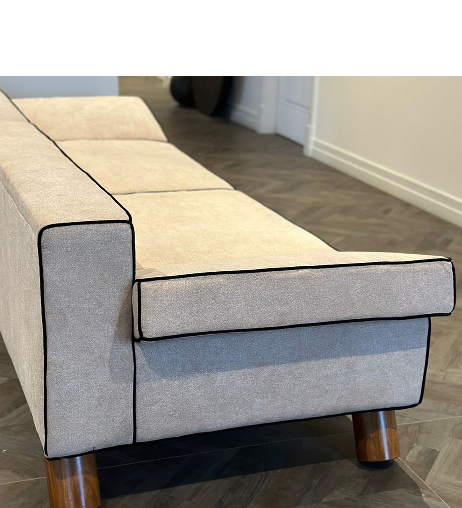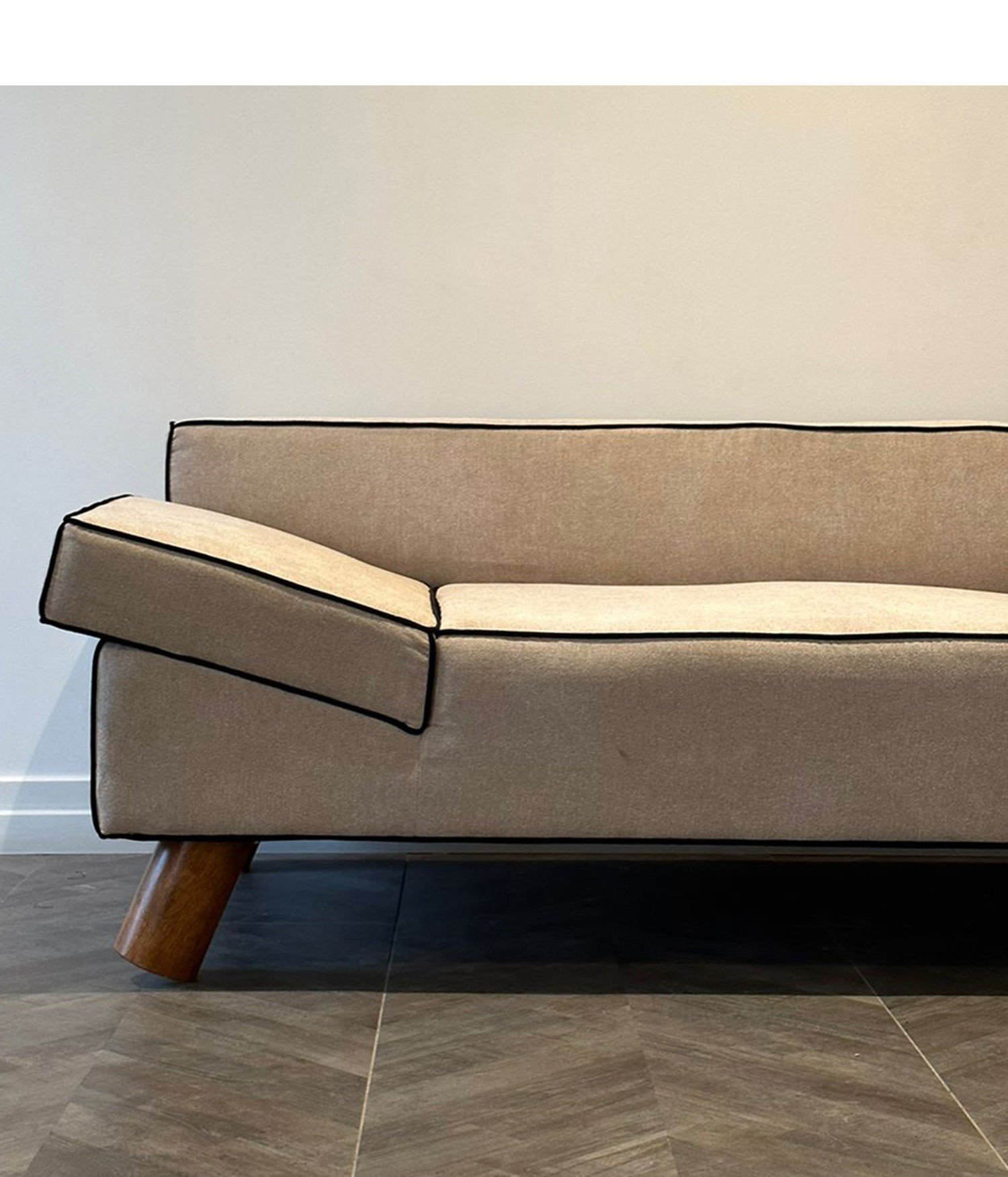 The Outline Sofa features a sleek, streamlined design crafted from solid wood. Its clean silhouette and comfortable seating make it a versatile addition to contemporary living rooms.