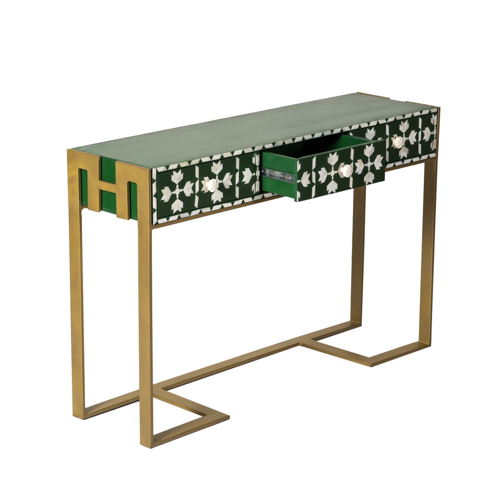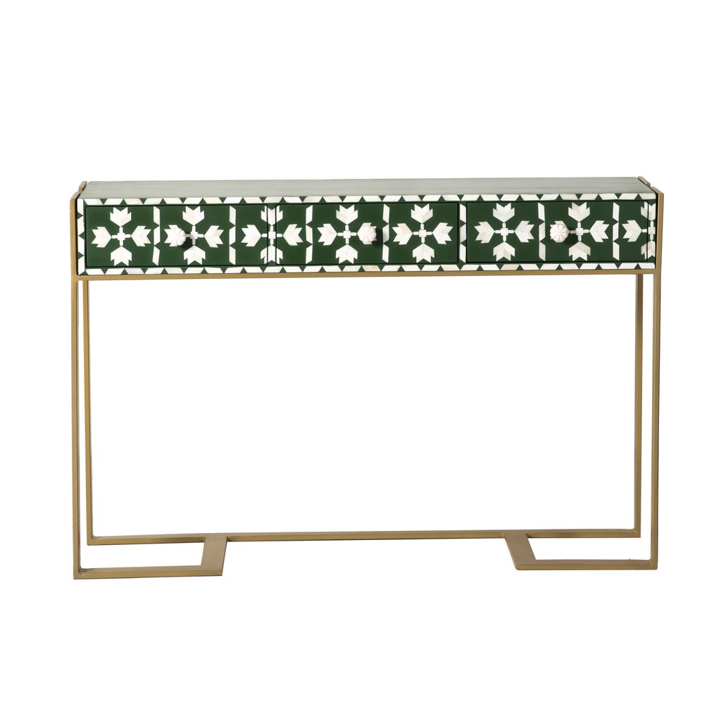 Oxalis 3 Drawer Bone Inlay Console with Gold Legs