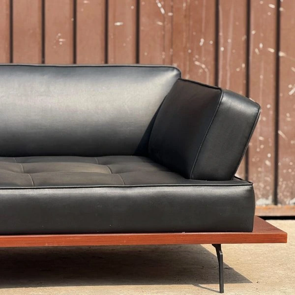 A luxurious lounger featuring a solid wood frame and premium leather upholstery, designed for ultimate comfort and elegant relaxation.