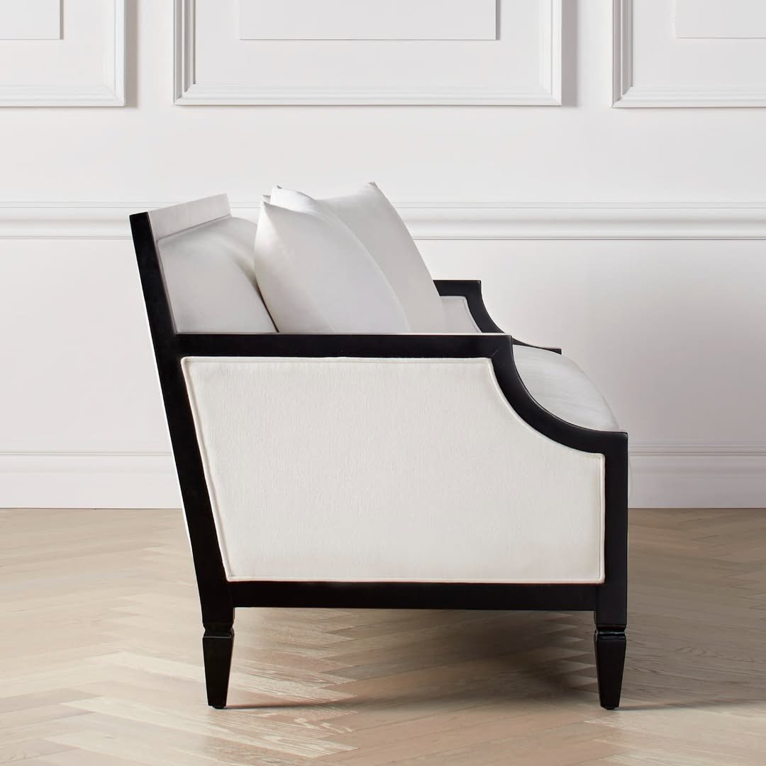 The Regency Sofa blends solid wood craftsmanship with plush upholstery, offering a sophisticated and comfortable seating experience. Its classic design complements any living room décor.