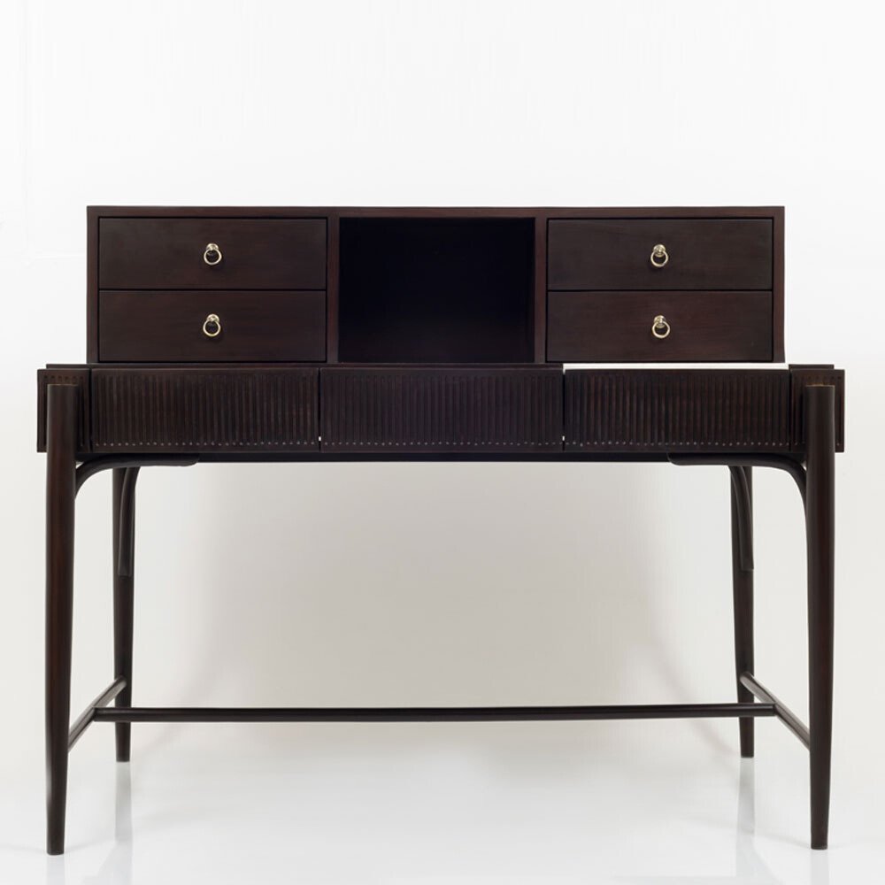 A sturdy and elegant writing desk crafted from solid wood, featuring a built-in organizer for efficient storage and workspace management. Perfect for home offices or study areas, blending functionality with classic design.