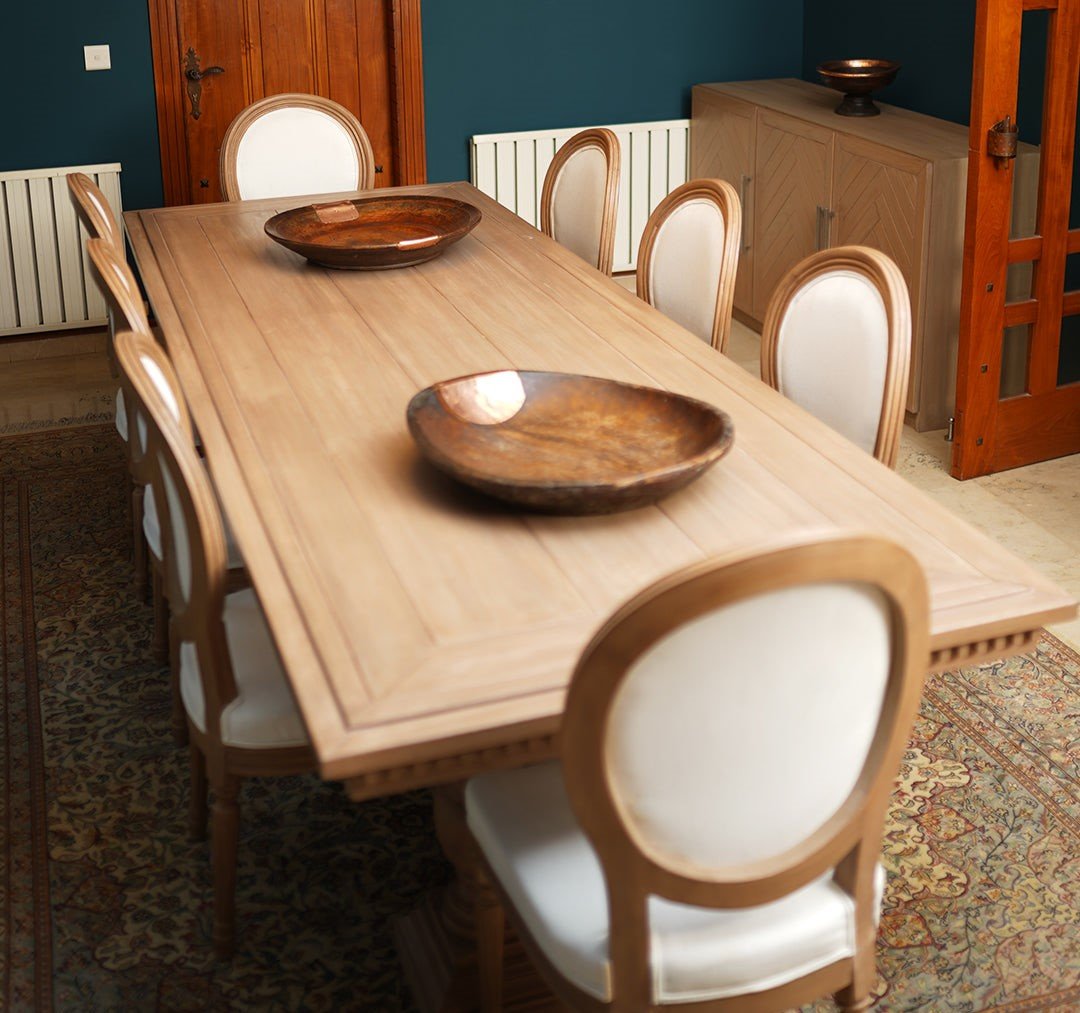 The Restoration Hardware Dining Table showcases timeless elegance with a solid wood construction and a grand, elongated design. Perfect for large gatherings, it blends durability with classic sophistication.