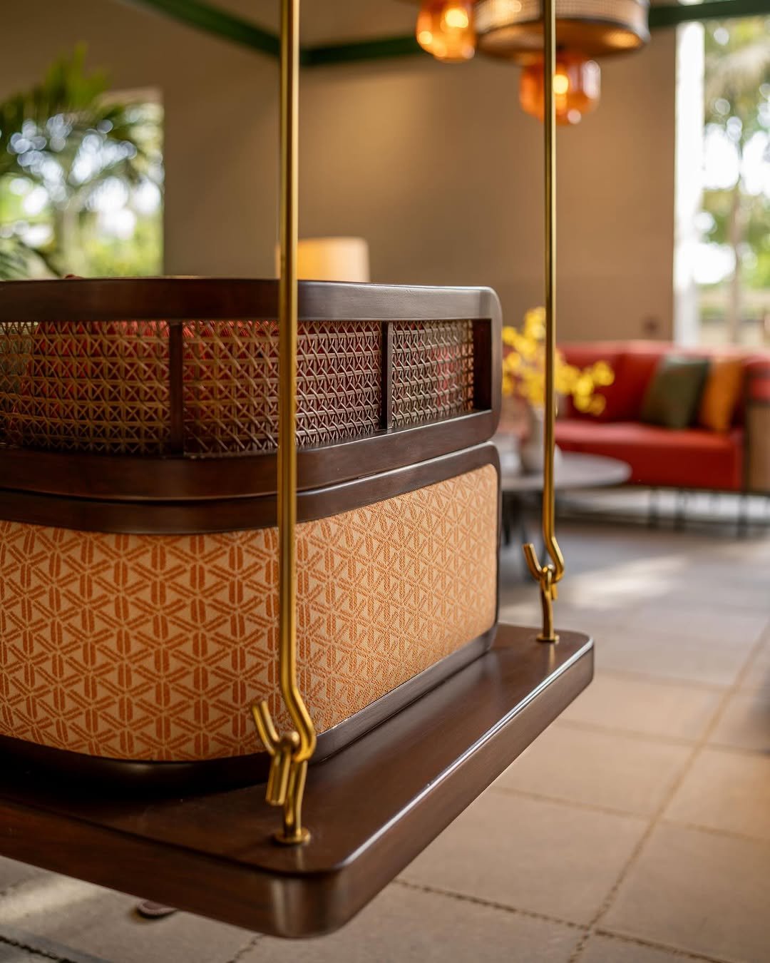 Tags: brass rod swing, cane swing with brass, designer swing, handcrafted jhula, heritage swing, jodhpur swing, luxury jhula, royal wooden swing, upholstered swing, wooden cane swing
