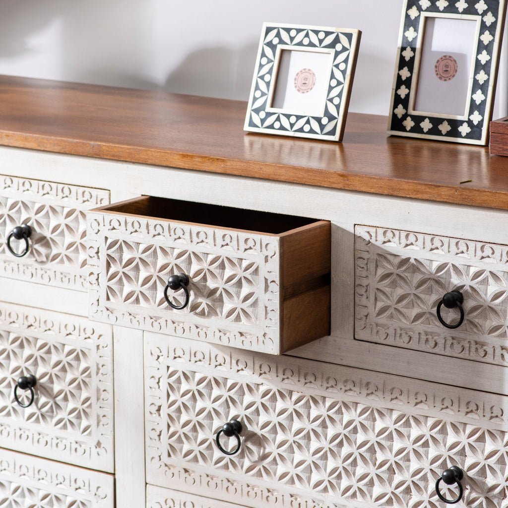 Sculpted Heartwood Handcarved Chest of Drawer White Finish