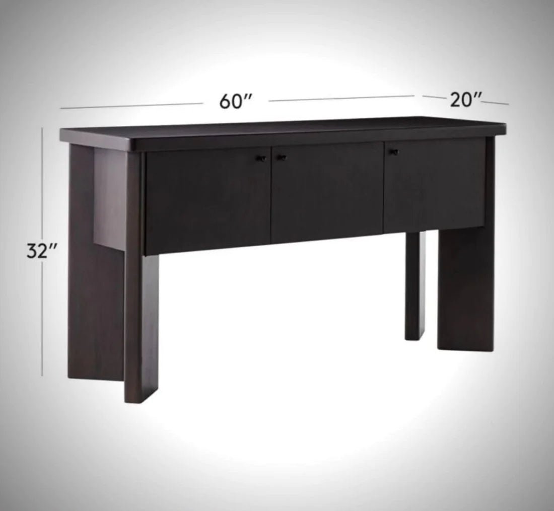 The Shadow Blackened Wooden Sideboard features a sleek, minimalist profile with a bold blackened finish. Crafted from solid wood, it offers ample storage and a modern edge to elevate any interior.