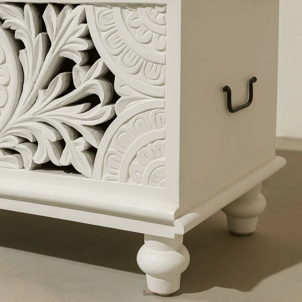 The SnowTrunk Chest is a timeless blend of vintage charm and modern utility — crafted from solid wood and finished in an elegant whitewash for a clean, airy aesthetic.