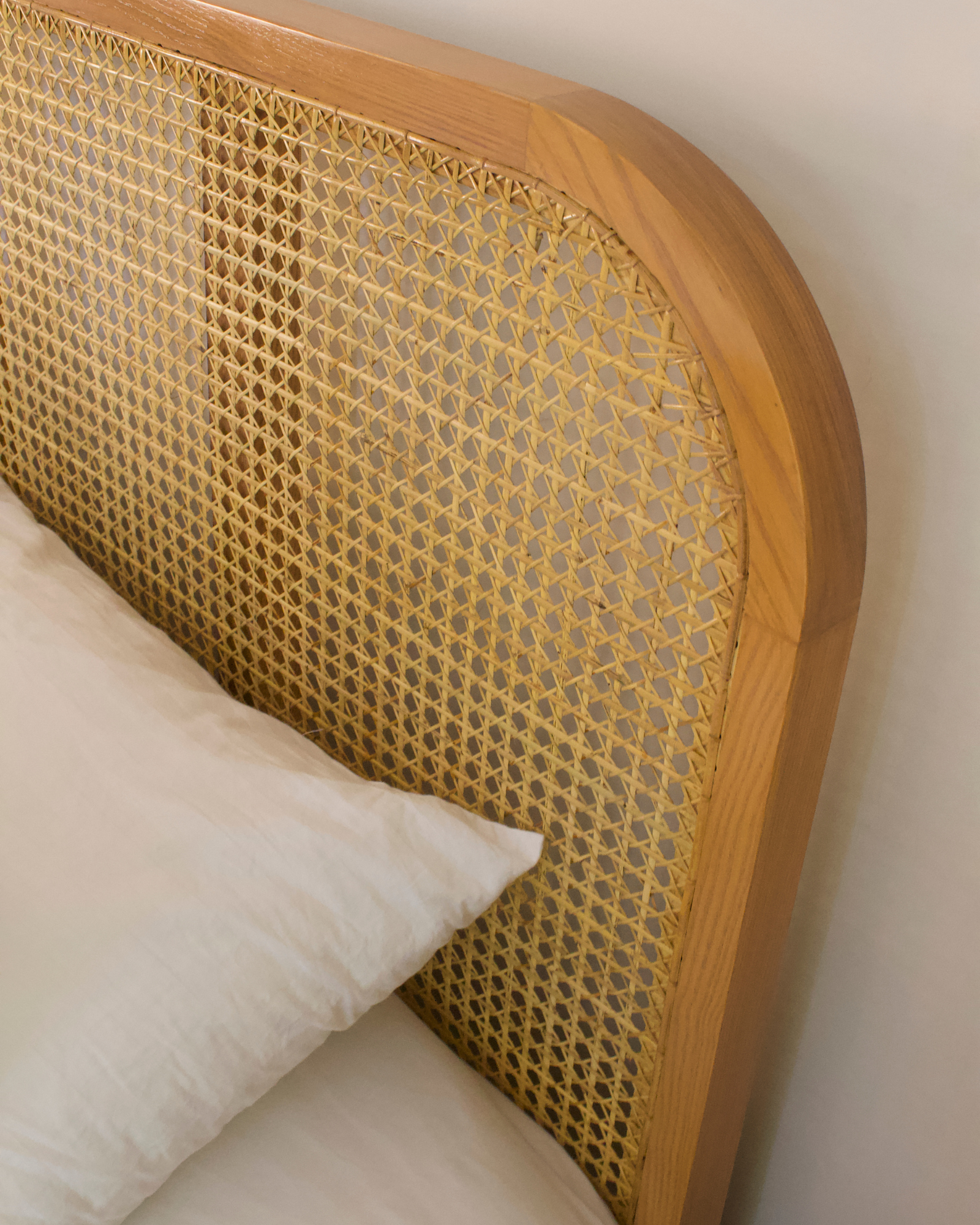 Tags: Cane Headboard, Minimalist Design, Modern Bedroom Furniture, Natural Aesthetic Bed, Queen Size Bed, Solid Cane Bed, Solid Wood Bed
