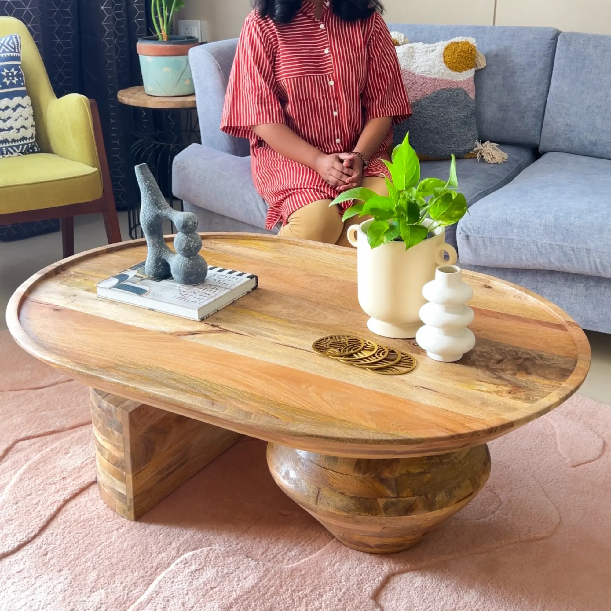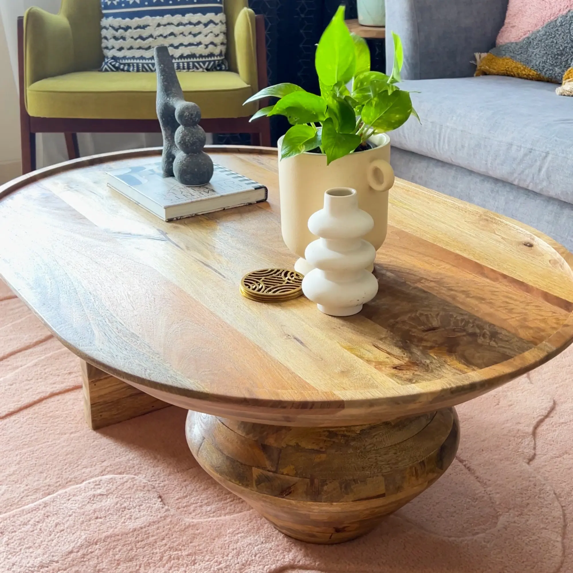 Solid Mango Wood Coffee Table with Natural Finish