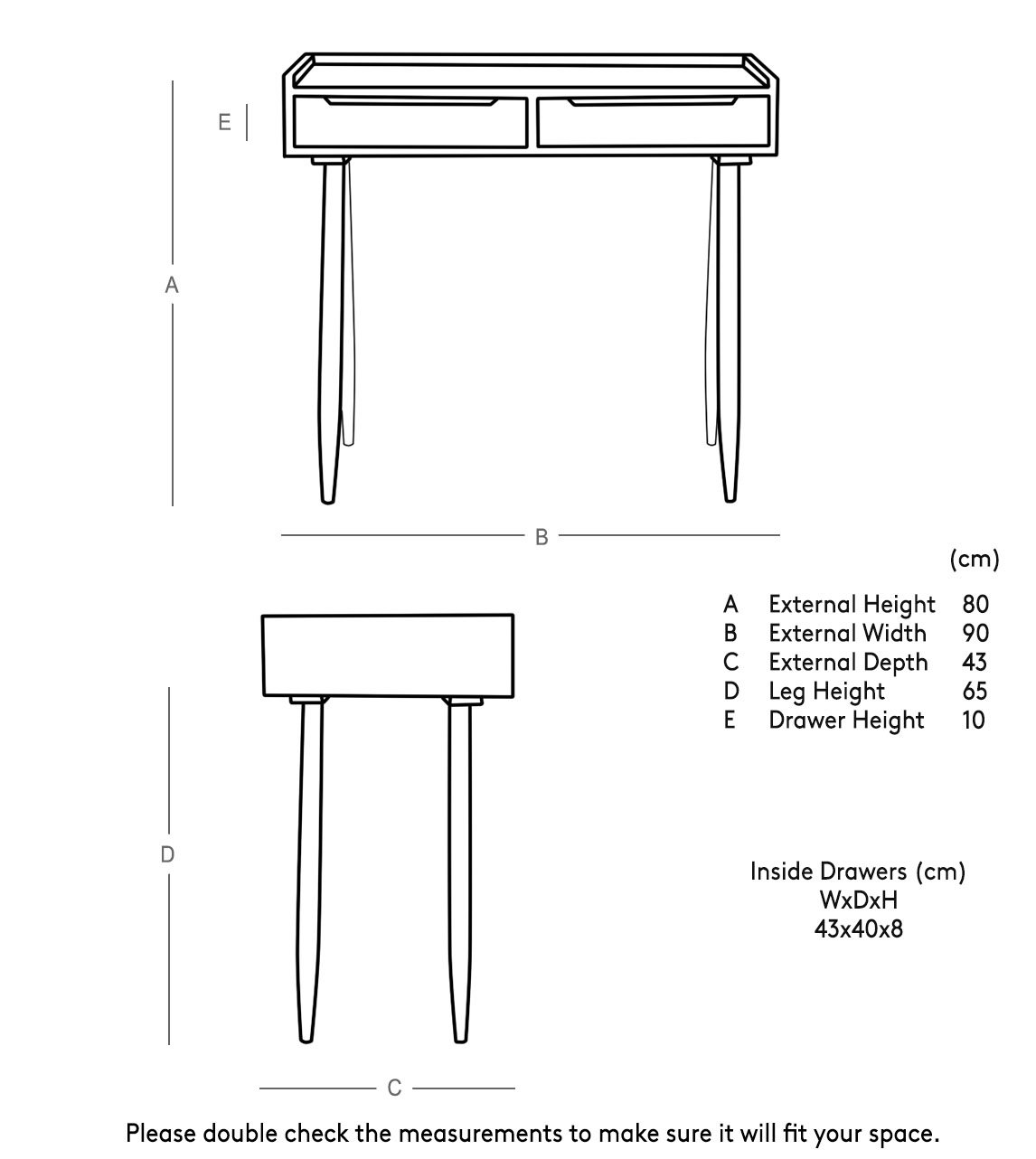 Dimensions: 43 cm (L) x 90 cm (W) x 80 cm (H)