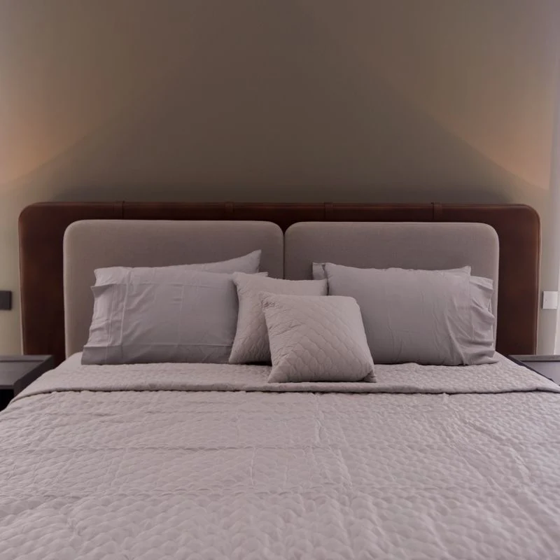 Beige Upholstered Platform Bed