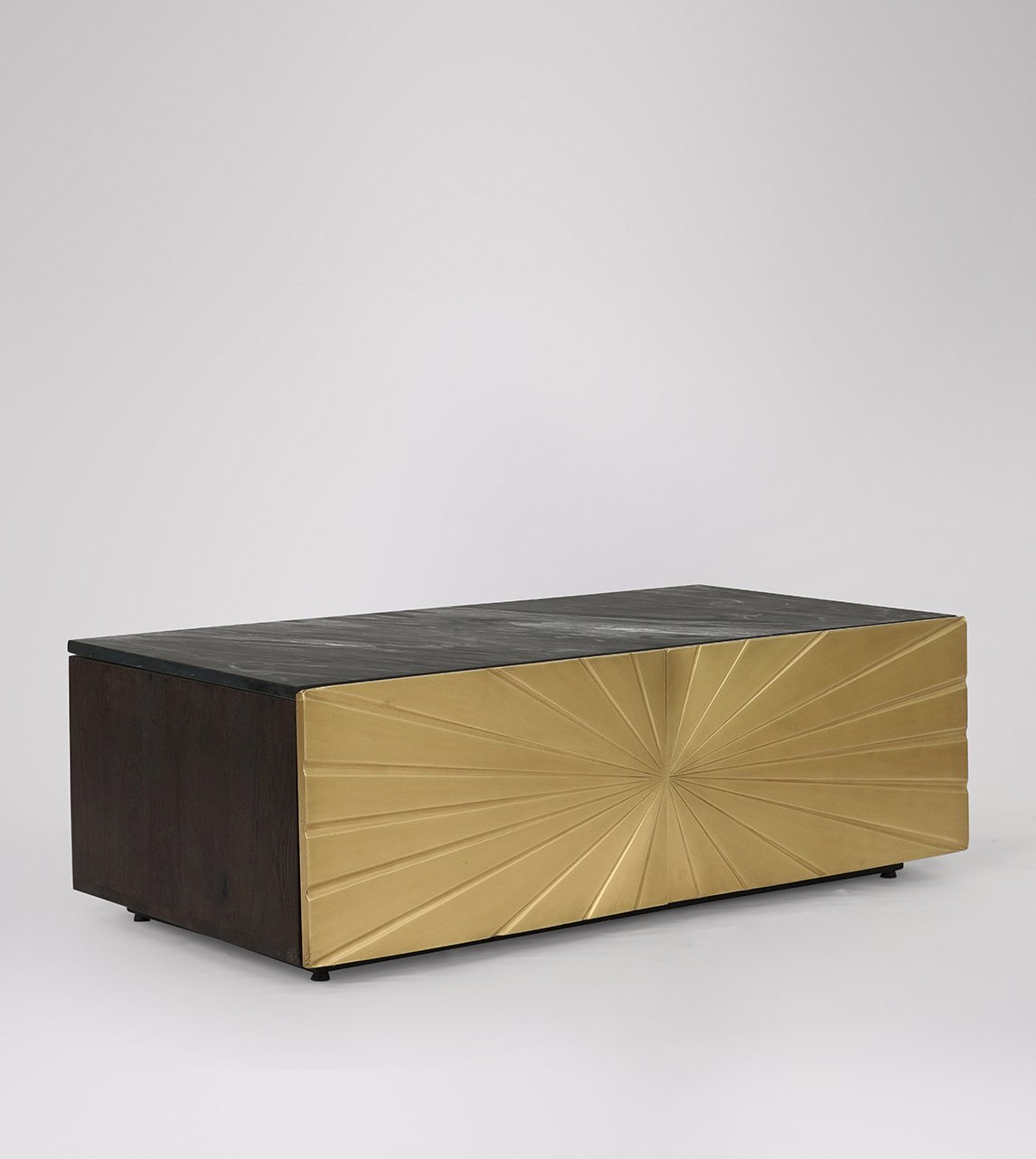 The Ziggy Coffee Table with Storage blends functionality with contemporary design. Crafted from solid wood, it features a spacious tabletop and built-in storage, perfect for keeping your living area tidy and stylish.